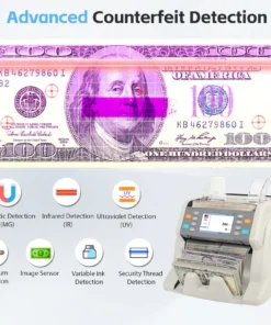 - دقة عالية في كشف التزوير وعد النقود